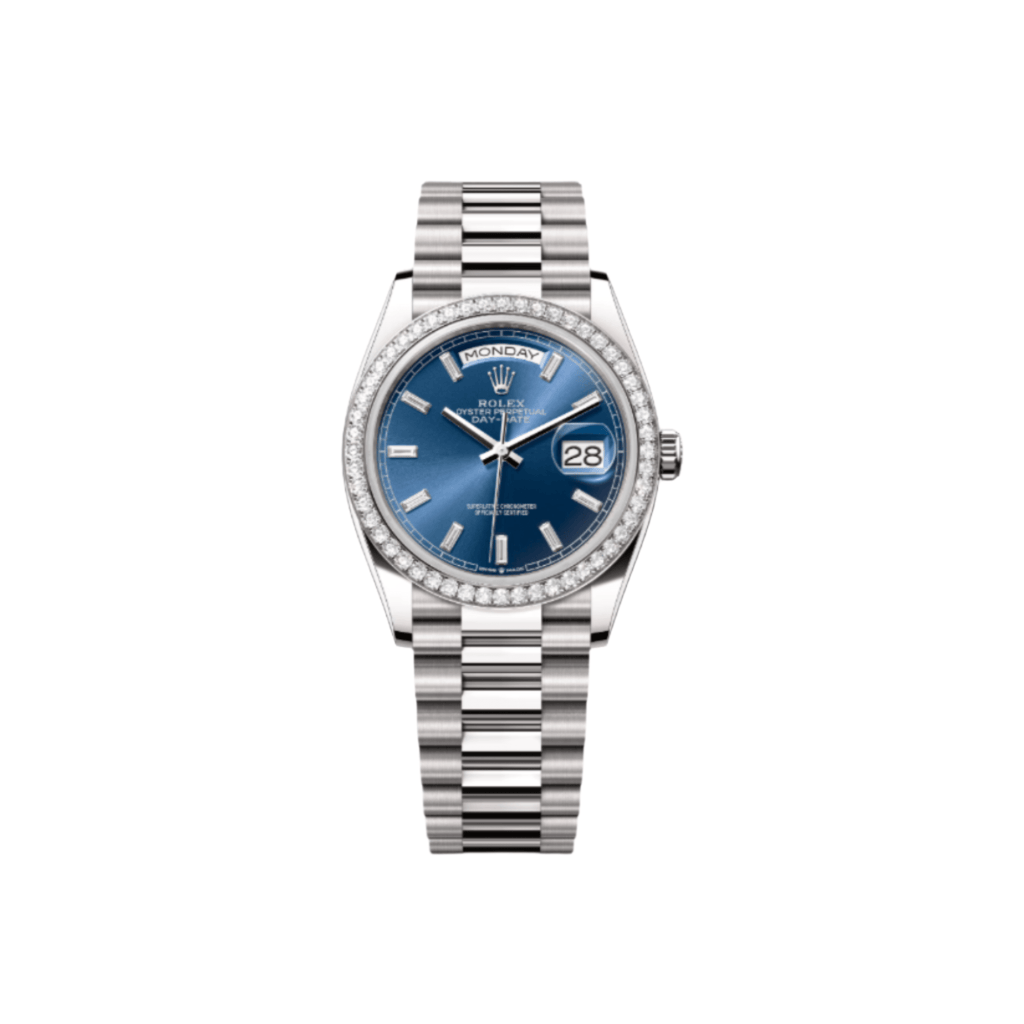 Discover luxury and precision with the Day-Date 36 Oyster, 36 mm, White Gold Reference 128349RBR. This elegant timepiece showcases a reliable day and date display, encased in a stunning white gold frame. Experience the perfect combination of functionality and style.
