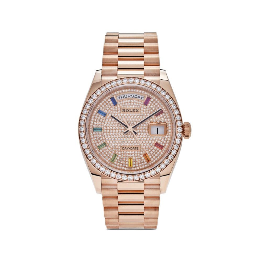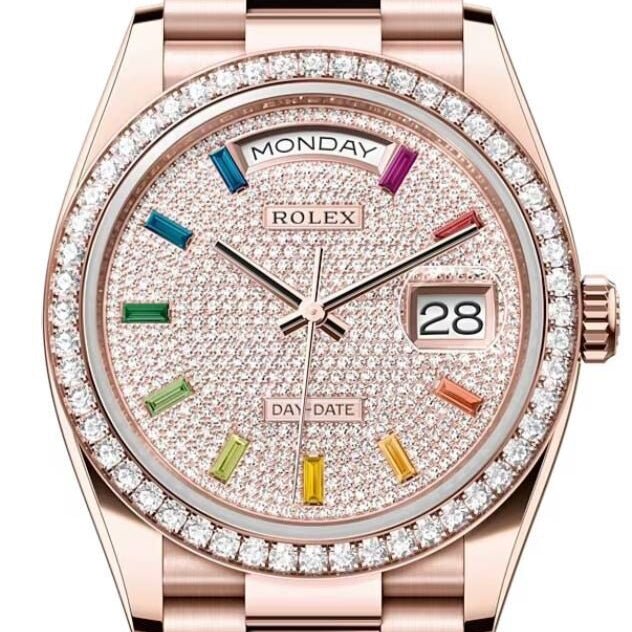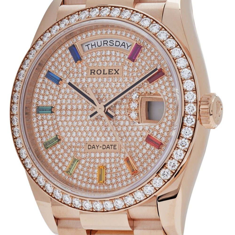 The Rolex Day-Date 36 Oyster Reference 128345RBR is the perfect combination of elegance and luxury. Crafted with 36mm Everose Gold and adorned with sparkling diamonds, this timepiece exudes sophistication. The iconic Day-Date feature displays the day and date, making it both beautiful and functional. Elevate your style with this stunning Rolex.