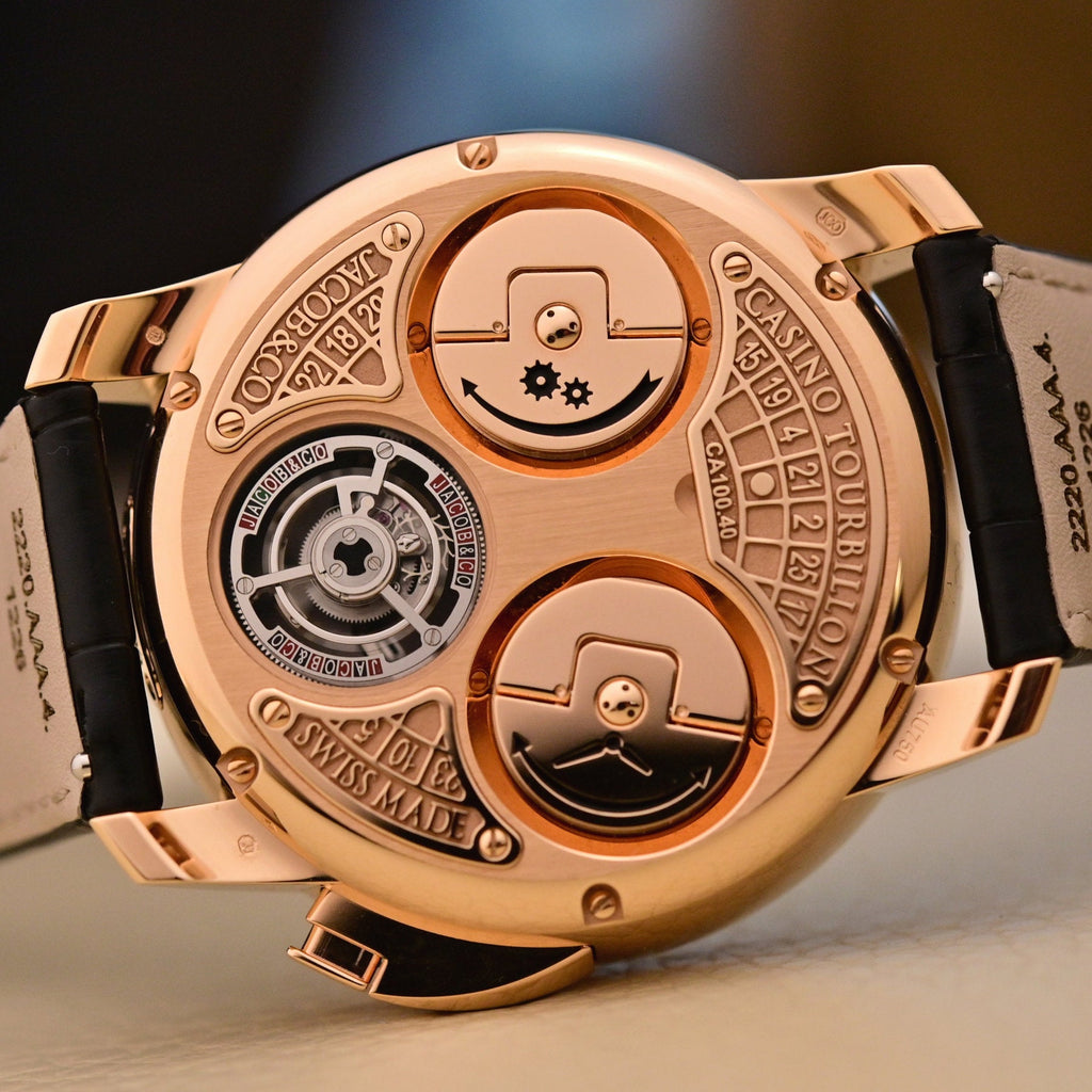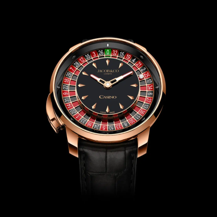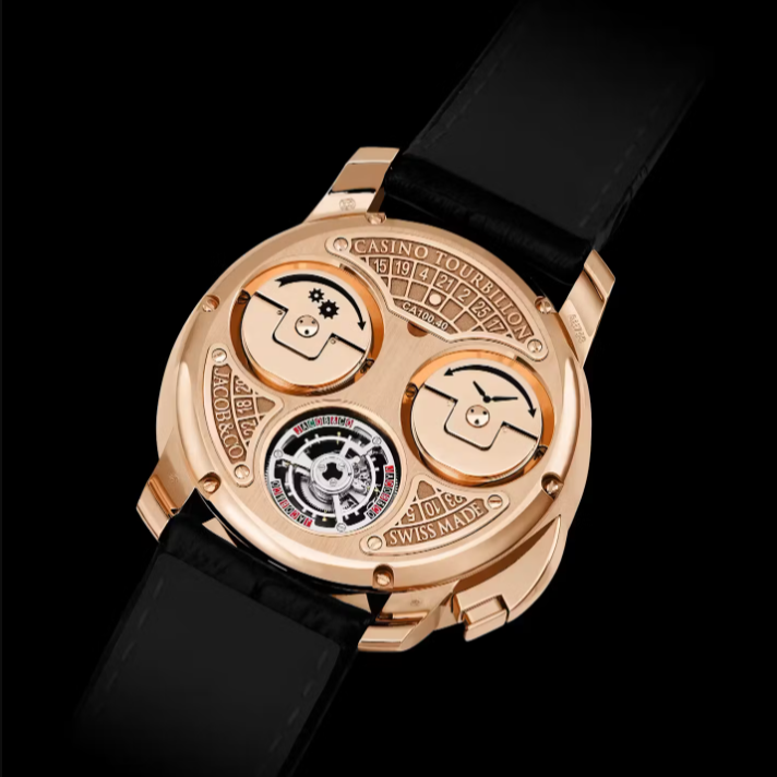 Expertly crafted by Jacob & Co., the Limited Edition Casino Tourbillon watch boasts a luxurious 44mm gold case. Its intricate tourbillon movement guarantees accurate timekeeping, while the casino-inspired design adds a touch of sophistication. Elevate your style with this prestigious timepiece.