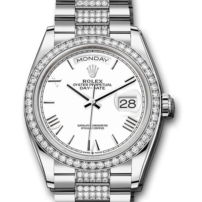 Discover the ultimate in luxury with the Rolex Day-Date 36 White gold Ref# 128349RBR-0026. This timepiece boasts a stunning white gold construction and features a sleek and sophisticated design. Experience superior quality and precision with the Rolex brand, making every moment truly exceptional.