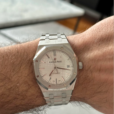 This timepiece embodies luxury and sophistication through its expert design and craftsmanship. the durable silver casing, precise 41mm size, and elegant white face make it a true testament to timeless style, perfect for any occasion.
