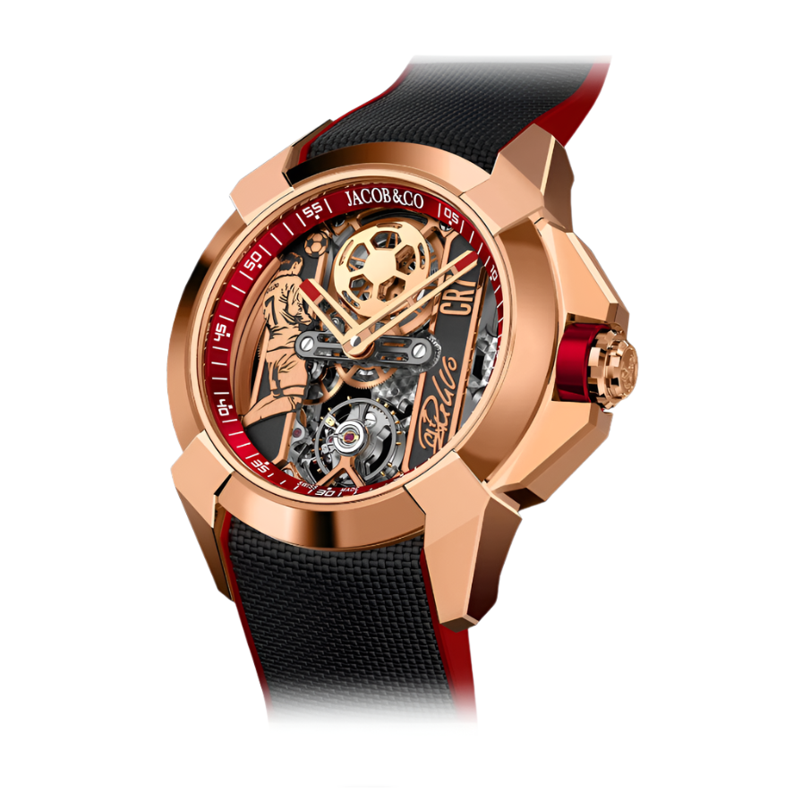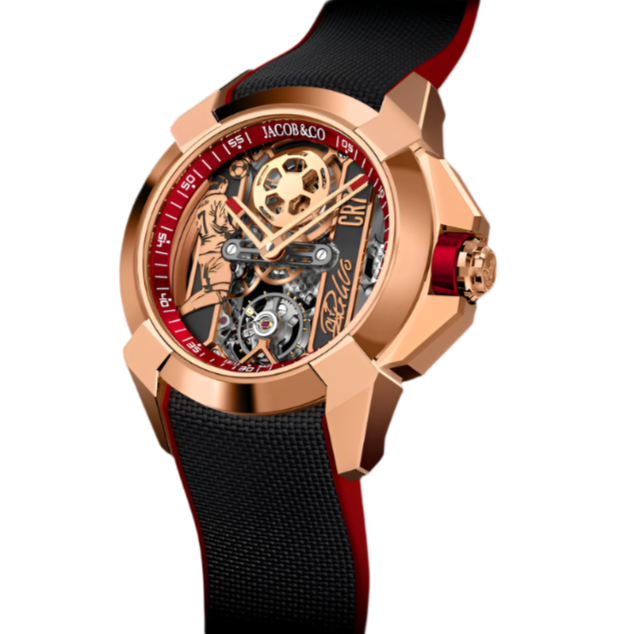 The Jacob & Co Epic X Flight of CR7 is a timepiece created for the modern man. Assembled with precision and style, this watch features unique design elements that showcase the collaboration between Jacob & Co and renowned footballer Cristiano Ronaldo. With a sophisticated and sleek aesthetic, this watch is the perfect accessory for any occasion. Elevate your style and add a touch of luxury with the Jacob & Co Epic X Flight of CR7.