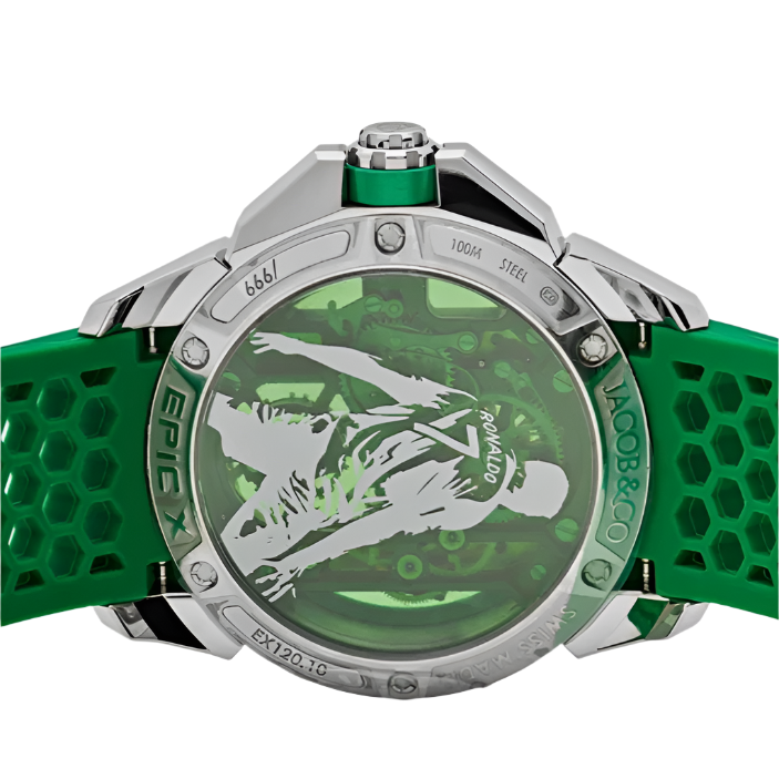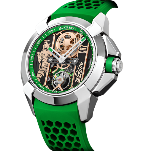 Experience the luxury of Jacob & Co with the Epic X Heart of CR7 watch. Featuring intricate design and precision engineering, this timepiece embodies the style and performance of professional footballer Cristiano Ronaldo. With its unique heart-shaped dial and top-of-the-line features, it's the perfect combination of elegance and athleticism
