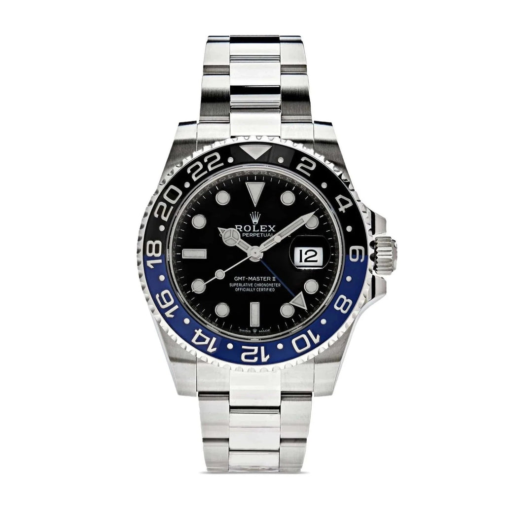 The Rolex GMT-Master II Batgirl watch boasts a striking ceramic and steel jubilee bracelet, making it both durable and stylish. With its precision and accuracy, this watch is perfect for any on-the-go professional or adventurer. Keep track of multiple time zones with its GMT feature.