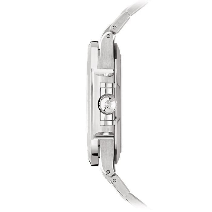 The integrated stainless steel bracelet seamlessly complements the case, creating a harmonious and balanced aesthetic. Meticulously finished with alternating brushed and polished surfaces, the bracelet not only enhances the watch's visual appeal but also ensures a comfortable and secure fit on the wrist.
