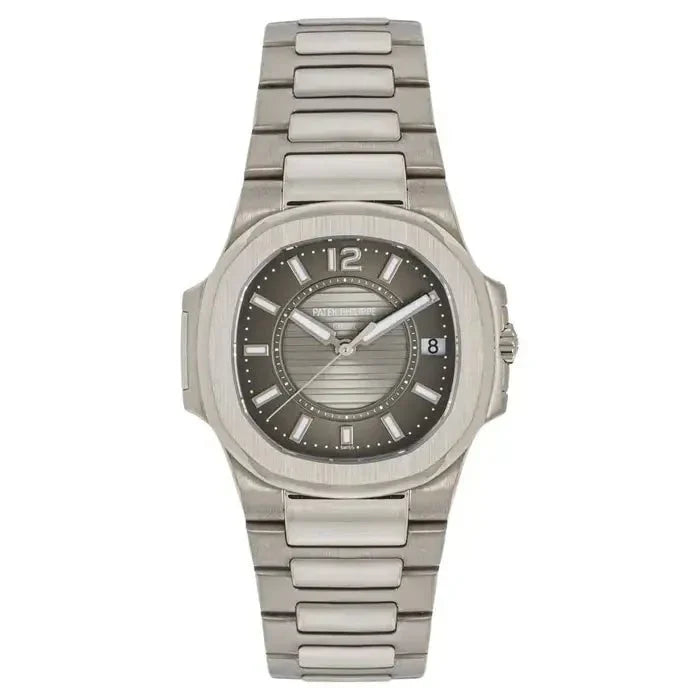 The dial of the Nautilus Silver exudes understated elegance, Its clean and minimalist design is accented by luminous hands and markers, providing optimal readability in any lighting condition.