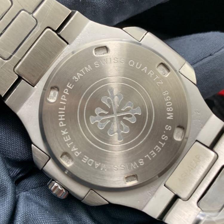 The Patek Philippe Nautilus Silver watch is a masterpiece , exemplifying the brand's commitment to timeless elegance and impeccable craftsmanship. Encased in high-grade stainless steel, the Nautilus's iconic porthole-inspired design captivates with its blend of sporty sophistication and refined aesthetics. At its heart lies a meticulously crafted mechanical movement, crafted with the utmost precision and expertise that Patek Philippe is renowned for. This self-winding movement ensures unparalleled accuracy and reliability, making the Nautilus Silver not just a timepiece, but an heirloom to be cherished for generations.