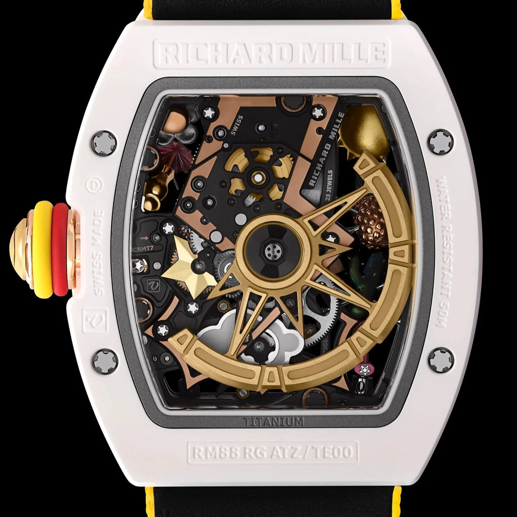 Experience luxury and precision with the Richard Mille RM 88 Automatic Winding Tourbillon Smiley watch. With its automatic winding and tourbillon features, this timepiece ensures accurate and reliable timekeeping. The iconic "smiley" design adds a touch of playfulness to this high-end watch, making it a unique and stylish accessory.