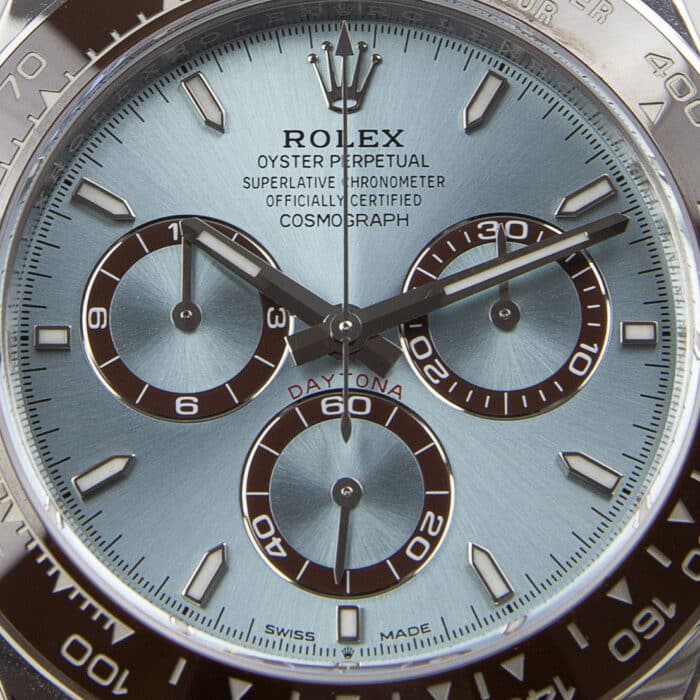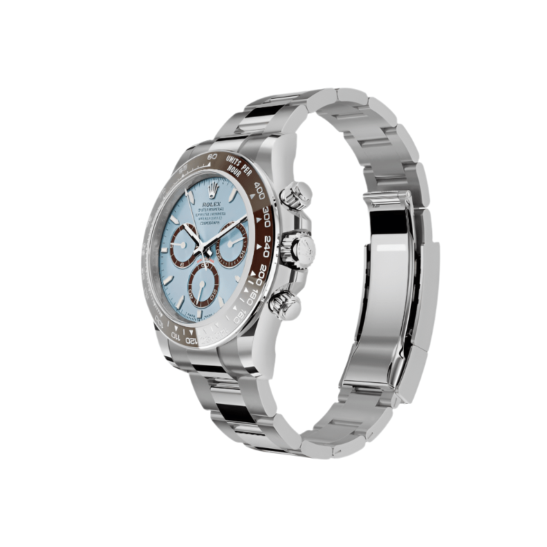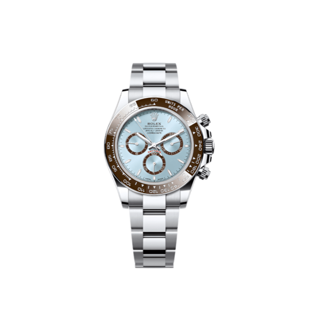 Experience the ultimate luxury with the Rolex Cosmograph Daytona. Featuring a stunning ice blue dial, this timepiece is both elegant and practical. With precise timekeeping and a sleek design, it's perfect for any occasion. Own a piece of expertly crafted Swiss engineering today.